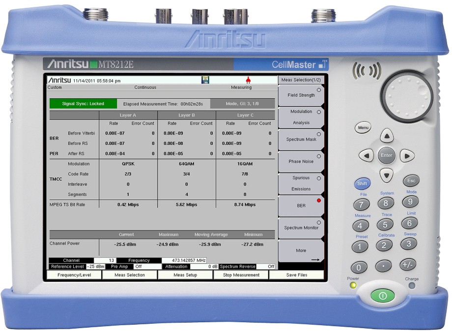 Anritsu ha presentato una nuova funzione opzionale dedicata alla misura del tasso di errore (BER) sui segnali televisi digitali a standard DVB-T/H e ISDB-T per i suoi strumenti di misura portatili delle serie MS2712E/MS2713E Spectrum Master e MT8212E/MT8213E Cell Master.