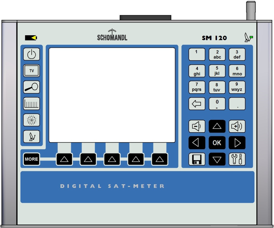 L'analizzatore di segnale digitale SM120 è dotato di un ricevitore DVB-S e DVB-S2 per frequenze comprese tra 900 e 2200 MHz e livelli di segnale compresi tra 30 e 105 dBμV. Uno schermo TFT da 5,7 pollici, a colori e ad alta luminosità, permette di visualizzare agevolemente le diverse misure dello strumento (compresi lo spettro del segnale e i diagrammi di costellazione degli schemi di codifica QPSK/8PSK) e la stessa immagine televisiva (DVB-S/S2, SD e HD).