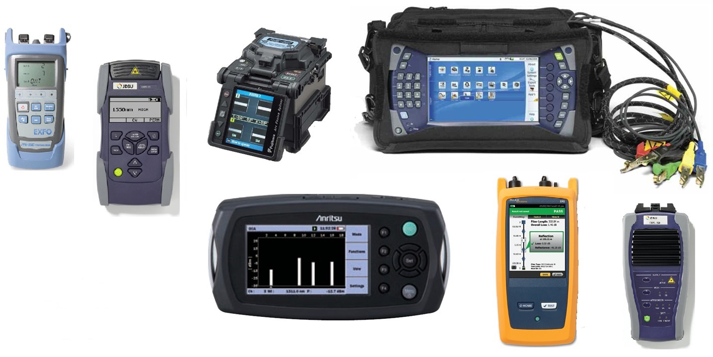 Il kit può comprendere sia strumenti di misura di vari costruttori, come misuratori di potenza, analizzatori di spettro ottico e riflettometri, ma anche accessori e apparecchiature per la lavorazione e il controllo delle terminazioni e dei cavi in fibra e dei relativi connettori.