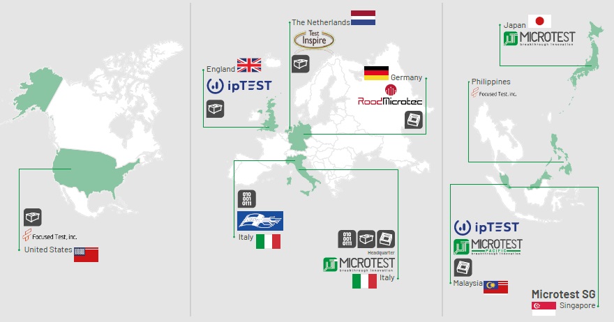 Microtest è ora presente con 13 sedi operative in Europa, Stati Uniti e Far East: dall’head quarter di Altopascio a quella di Malacca in Malesia e i due uffici commerciali a Singapore e Tokio, dalle sedi GEDEC a Genova e Torino, a quella di Test Inspire a Welsum in Olanda, e ancora dalle sedi RoodMicrotec a Nördlingen e Stoccarda in Germania, alle nuove di ipTEST a Guildford, in Regno Unito, e Ipoh, in Malesia, e alle new entry di Focused Test, in Boulder in Colorado e Cabuyao nelle Filippine.
