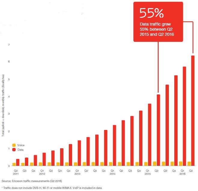 Ma non è solo il numero di utilizzatori a essere cresciuto enormemente, bensì la quantità di dati trasportati.