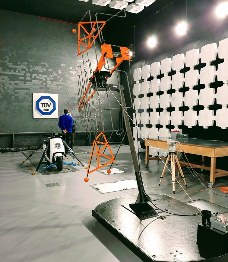 Strumentazione Rohde & Schwarz per le misure di compatibilità elettromagneticaIn particolare, la camera semianecoica da 15 m x 6 m x 5,5 m, attrezzata con strumentazione di misura prevalentemente di Rohde & Schwarz, ospita al suo interno anche una struttura a rulli che consente di effettuare prove di compatibilità e suscettibilità elettromagnetica con le ruote dei veicoli in movimento.