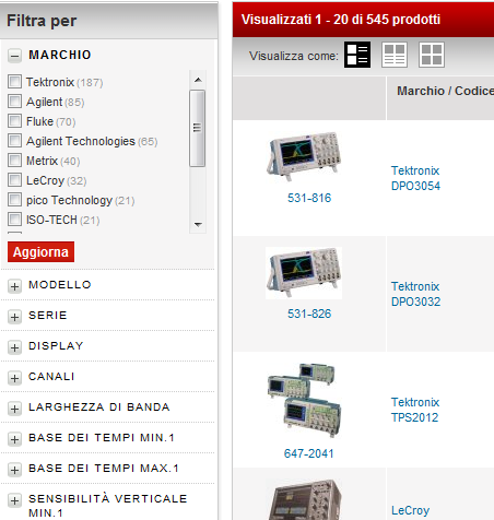 Mettiamo alla prova la nostra teoria restringendo la ricerca questa volta per marca, selezionando Agilent e Tektronix.