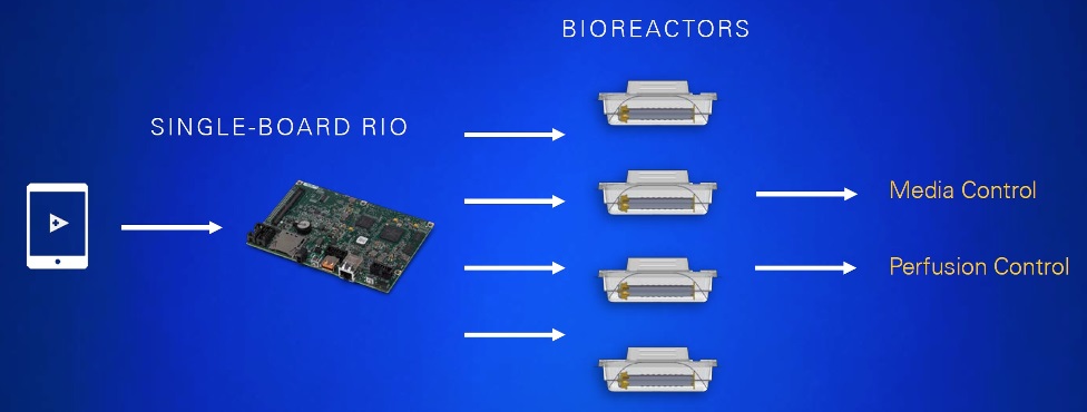 Il sofisticato sistema di controllo dei bioreattori è stato progettato da Biostage utilizzando LabVIEW, che viene eseguito su una scheda Single-Board RIO.