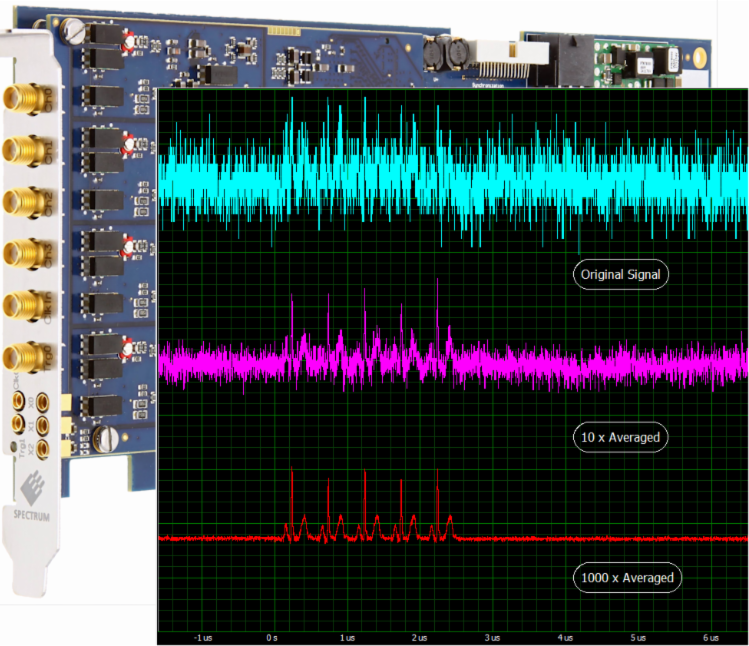 Sfruttando la FPGA integrata sulle sue schede per l'acquisizione di segnali ad alta velocità della serie M4i, Spectrum ha introdotto un nuovo firmware che permette di elaborare la media in tempo reale sui segnali acquisiti allo scopo di migliorare il rapporto segnale/rumore.