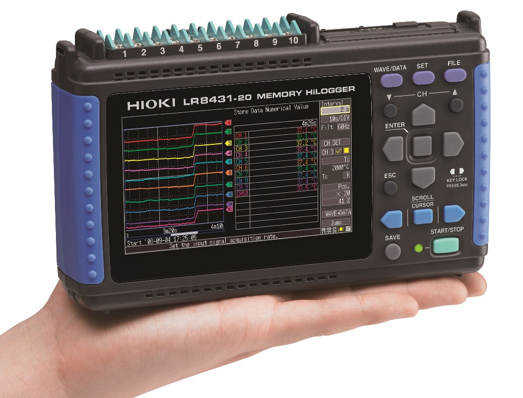 Sta veramente nel palmo di una mano, ma il nuovo oscilloscopio registratore dati LR8431-20 di Hioki è comunque dotato di ben 10 canali isolati per misure di temperatura tramite termocoppie, oppure misure di tensione (fino a 60 V cc) per effettuare rilevamenti su vari tipi di trasduttori di misura.