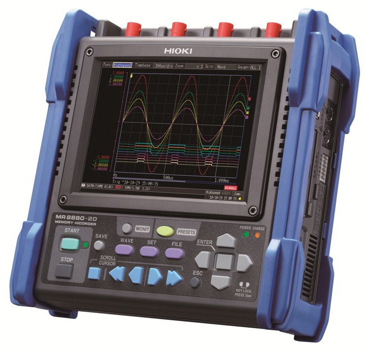 Il registratore dati a memoria digitale Hioki 8880-20MR unisce le funzionalità di un oscilloscopio digitale a bassa frequenza con quelle di un registratore di eventi, permettendo la visualizzazione di segnali analogici e digitali e, se necessario, la loro registrazione per lunghi periodi di tempo.