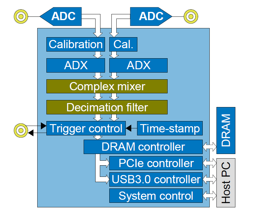 Il digitalizzatore ADQ7WB, disponibile in formato modulare PCIe e PXI, permette di campionare direttamente il segnale RF o IF con una larghezza di banda istantanea fino a 1 GHz entra la banda di frequenza da 1 MHz a 6,5 GHz.