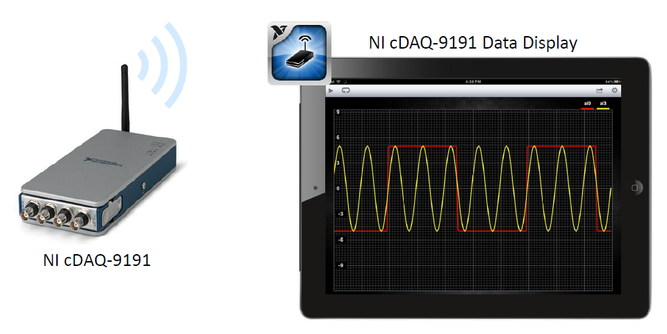 L'app NI cDAQ-9191 Data Display (disponibile per iOS e Android) permette invece di collegare il sistema di acquisizione dati compatto di National Instruments con interfaccia WiFi a un dispositivo mobile per visualizzare i dati raccolti sfruttando l'interfaccia software cDAQ-9191 Web API.