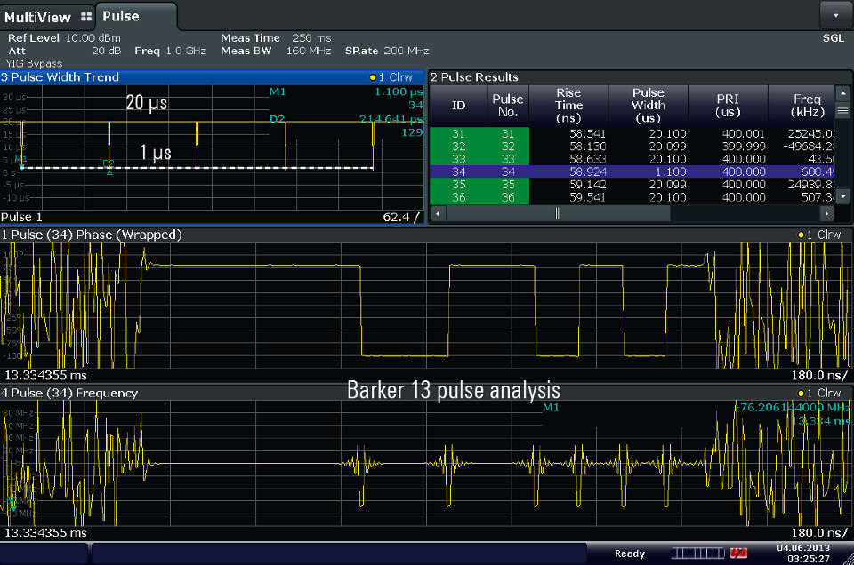 Nel settore della difesa e aerospazio, invece, la banda di analisi di 2 GHz permette di misurare le caratteristiche di impulsi radar con durate anche di soli pochi ns, oltre che di verificare il comportamento di radar "agili" o che cambiano frequenza molto rapidmente.