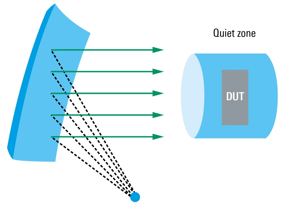 La metodologia CATR è un ingegneso sistema che consente di ricreare le condizioni di propagazione in campo lontano in uno spazio molto più compatto sfruttando un'antenna emittente abbinata a un riflettore parabolico che trasforma le onde sferiche in onde piane.
