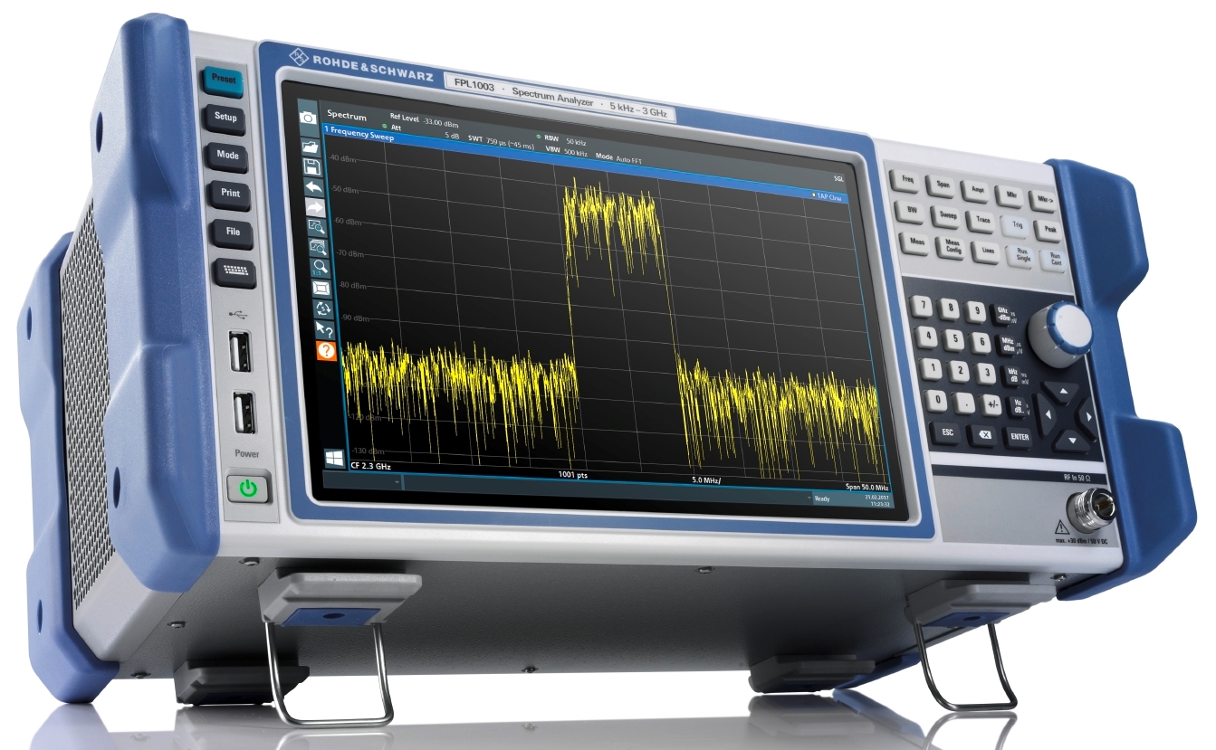 L'analizzatore di spettro R&S FPL1000 è uno strumento per effettuare misura nell'intervallo di frequenze da 5 kHz a 3 GHz con prestazioni a radiofrequenza decisamente buone visualizzando i risultati su un display touch di 10,1" e che occupa sul banco di lavoro un'area di soli 41 x 24 cm.