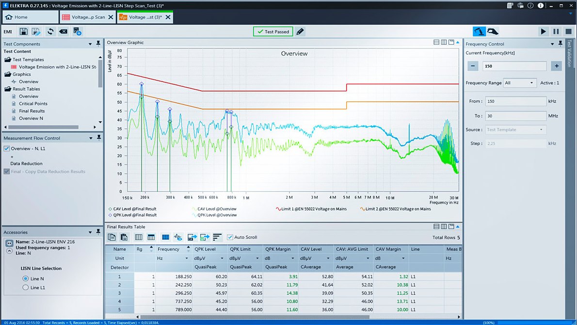 Compatibile con tutti gli analizzatori di spettro e ricevitori di misura dell'azienda tedesca, ha un'interfaccia utente molto intuitiva e integra una serie di procedure guidate per configurare le sequenze di prova per identificare il livello di emissioni condotte o irradiate effettuate in celle GTEM o tramite reti di stabilizzazione dell'impedenza (LISN).
