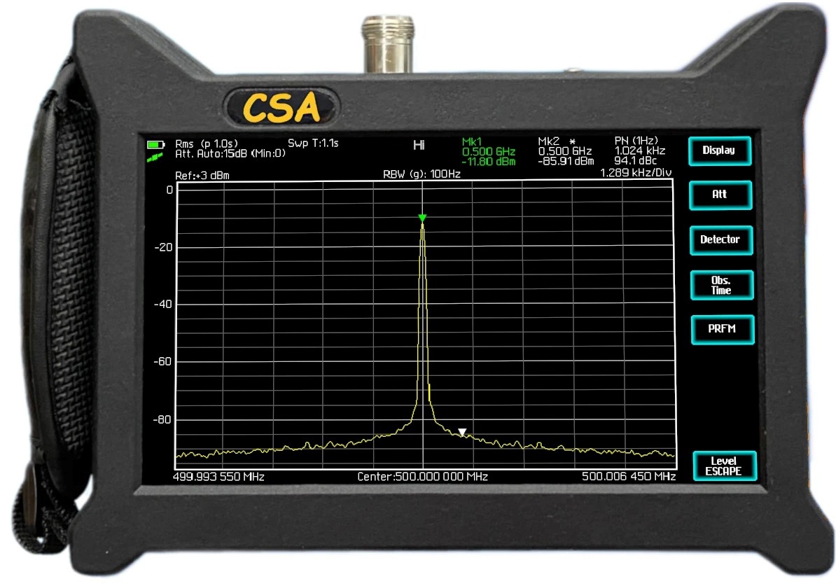 L'analizzatore di spettro CSA offre inoltre eccellenti prestazioni RF ed è dotato di tutte le più importanti funzioni di analisi sui segnali RF che aiutano il lavoro dei tecnici di assistenza e manutenzione degli impianti a radiofrequenza.