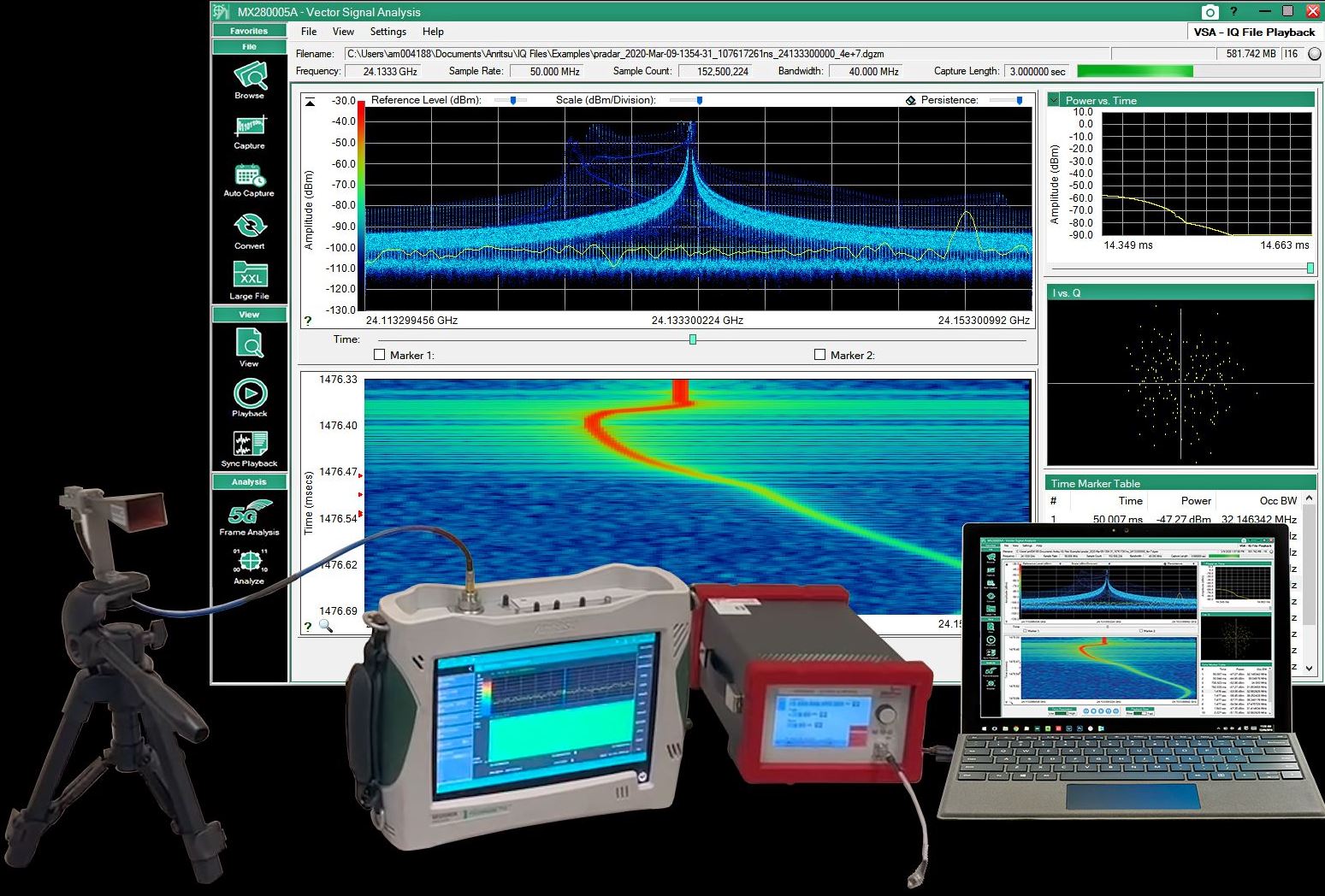 L'applicazione per PC Anritsu IQ Signal Master MX280005A è stata potenziate per integrare l'acquisizione di segnali RF in formato IQ utilizzando l'analizzatore di spettro Field Master Pro MS2090A, per poi caricare il file di dati IQ nel generatore di segnali vettoriali di AnaPico, in grado di riprodurre qualsiasi componente di frequenza fino a 40 GHz.