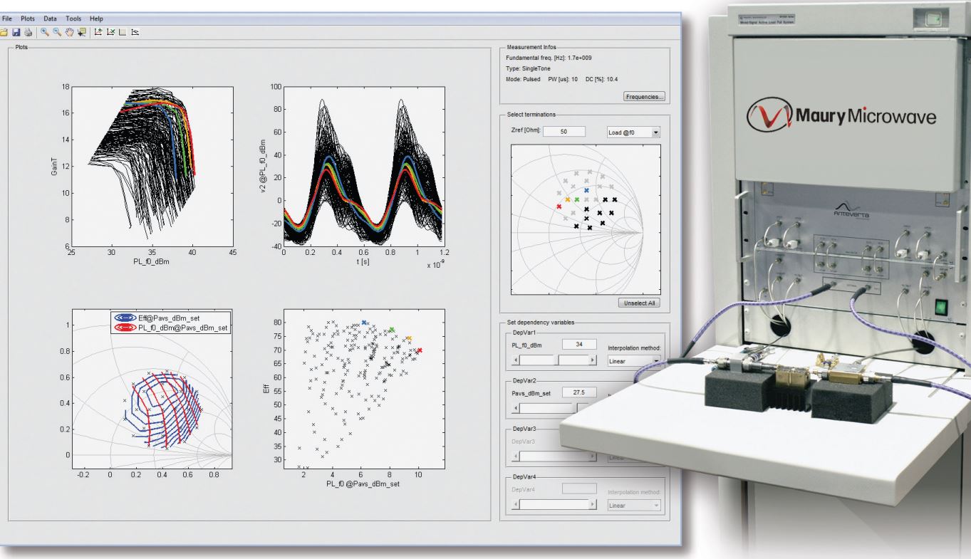 La soluzione automatizzata per la caratterizzazione non lineare è stata realizzata integrando un cestello PXI di National Instruments con i prodotti di Anteverta Microwave, Focus Microwaves, Maury Microwave e Mesuro.