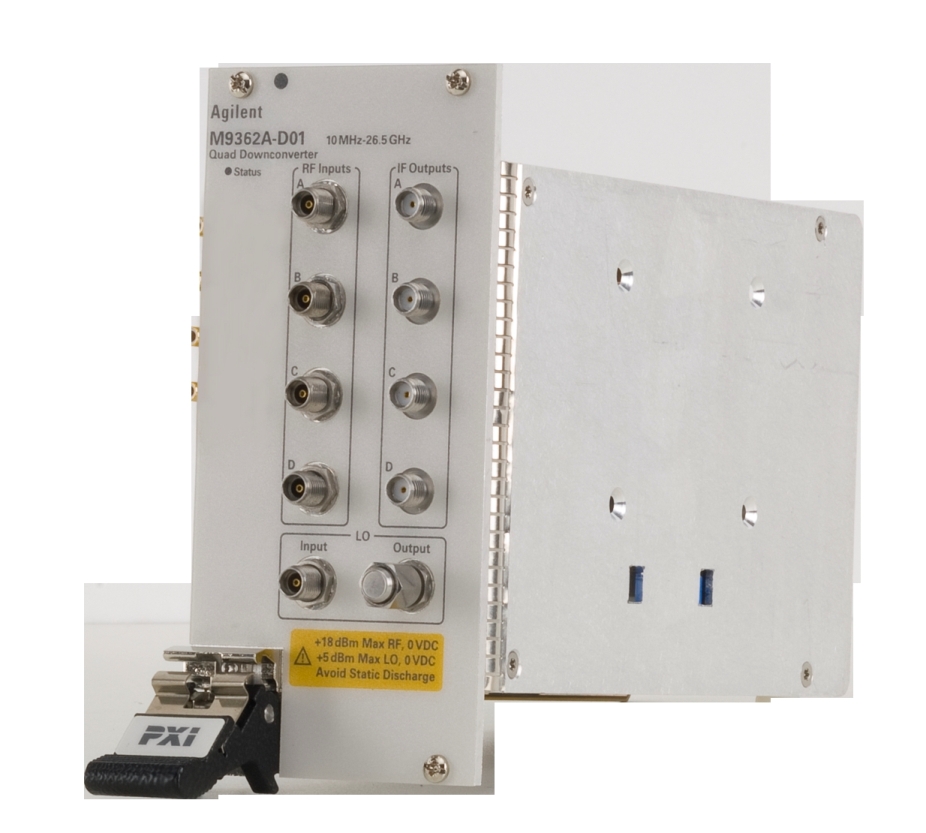 Il convertitore di frequenza (downconverter) M9362A-D01 a quattro canali coerenti funzionante nella banda da 10 MHz a 26,5 GHz con 1,5 GHz di banda instantanea per canale fa parte delle nuova famiglia di prodotti modulari per bus PXI appena lanciata da Agilent.