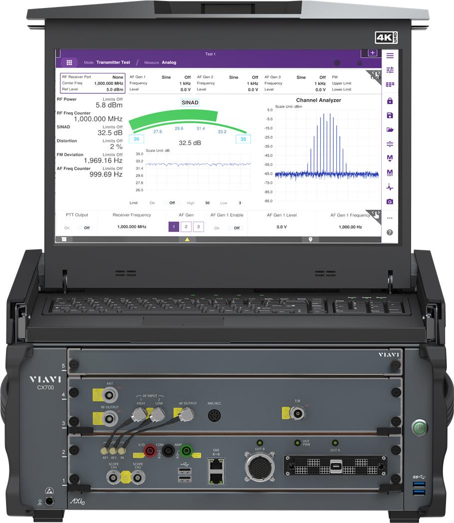 Viavi Solutions ha presentato il suo nuovo sistema di test delle comunicazioni radio CX700 ComXpert. Si tratta di uno strumento di nuova generazione destinato ai produttori di radio e il personale militare che lavora nelle basi e sul campo, offrendo una soluzione completa ad alte prestazioni per i effettuare collaudi in produzione e le prove nelle basi o sul campo di sistemi radio che lavorano con qualsiasi tipo di forme d'onda, attuale e futura.