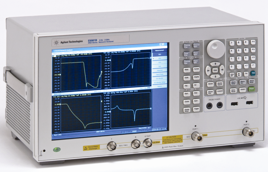 Il nuovo strumento Agilent E5061B fa parte della famiglia di analizzatori di reti ENA, che comprendo strumenti per analisi sia a radiofrequenza sia a bassa frequenza, per esempio per la valutazione del guadagno di anello nei circuiti dei convertitori DC-DC.
