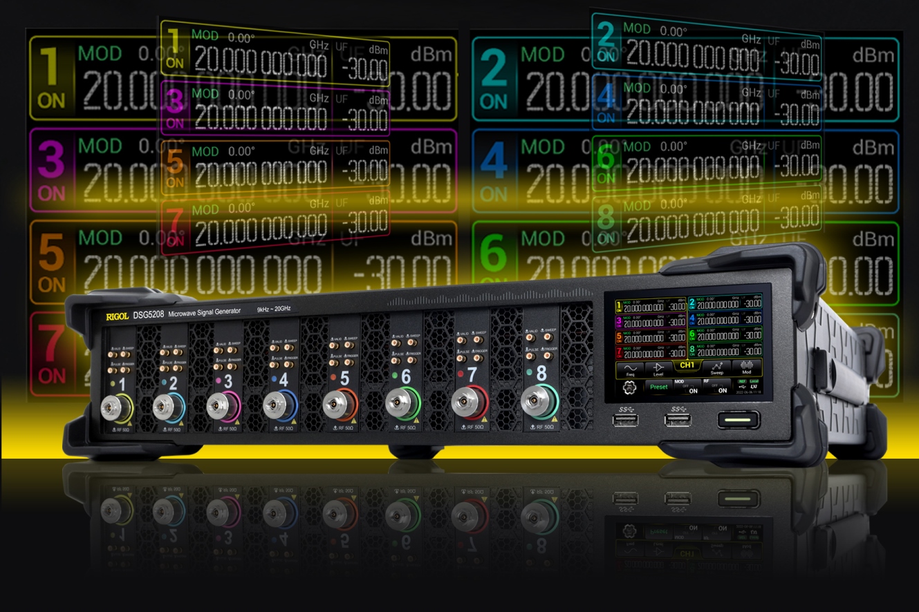 Rigol ha presentato il nuovo generatore di segnali microonde DSG5000, disponibile con due diverse gamme di frequenza, da 9 kHz a 12 GHz o fino a 20 GHz, nelle versioni a 2, 4, 6 o 8 canali, con un isolamento canale-canale fino a 85 dB.