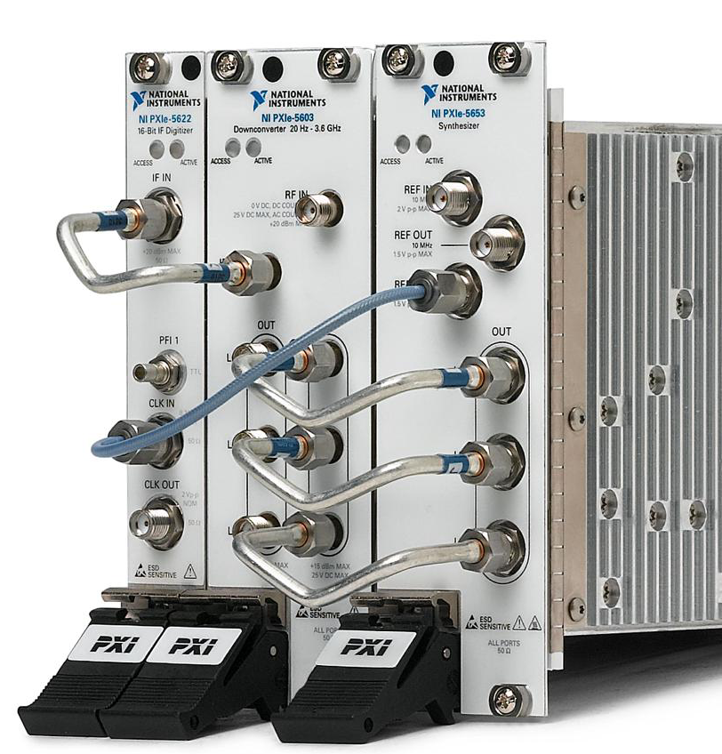 Fisicamente il nuovo analizzatore vettoriale proposto da National Instruments è composto da schede che occupano 5 slot di un cestello PXI Express: il convertitore di frequenza NI PXIe-5603 accoppiato al nuovo oscillatore locale sintetizzato NI PXIe-5653 e il digitalizzatore a frequenza intermedia NI PXIe-5622 con velocità di campionamento fino a 150 MS/s.