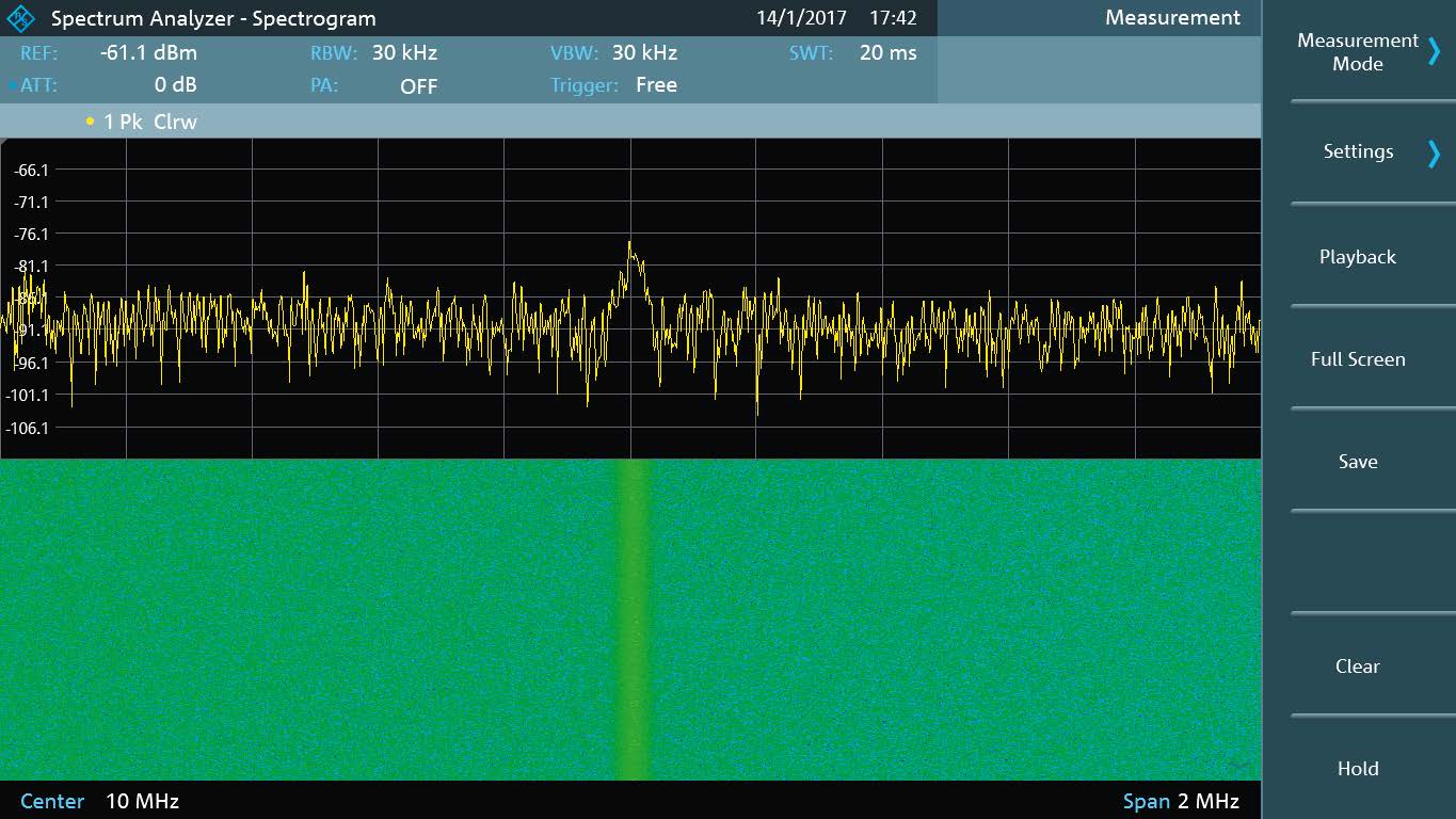 Grazie ad una banda di analisi di 10 MHz prevista di serie, estendibile fino a 40 MHz, è possibile analizzare in dettaglio segnali analogici grazie all'opzione FPL-K7, o diversi tipi di segnali digitali, come Bluetooth Low Energy o i più recenti a standard NB-IoT, che possono essere caratterizzati e demodulati utlizzando il software R&S VSE e l'opzione VSE-K70.