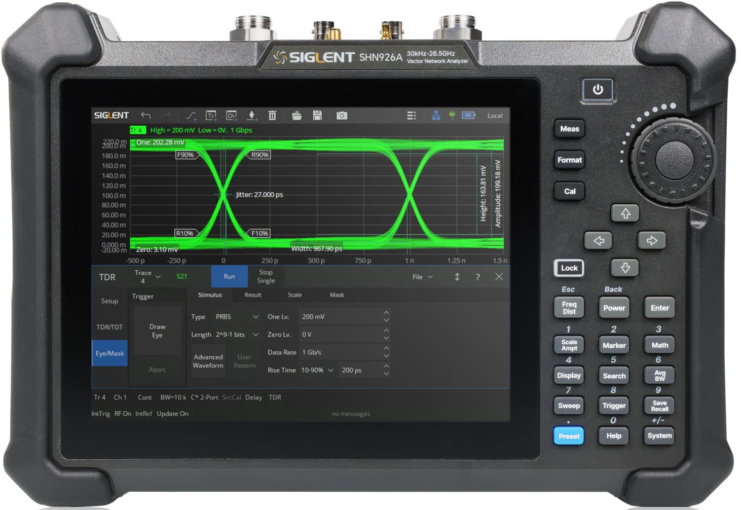 Tutti i modelli dell'analizzatore SHN900A supportano la misura dei parametri S (S11, S12, S21, S22) e dei parametri S differenziali (Sdd11, Sdc11, Scd11, Scc11), oltre alle rappresentazioni standard dei risultati, quali diagramma di Smith, diagramma polare, SWR, e così via.