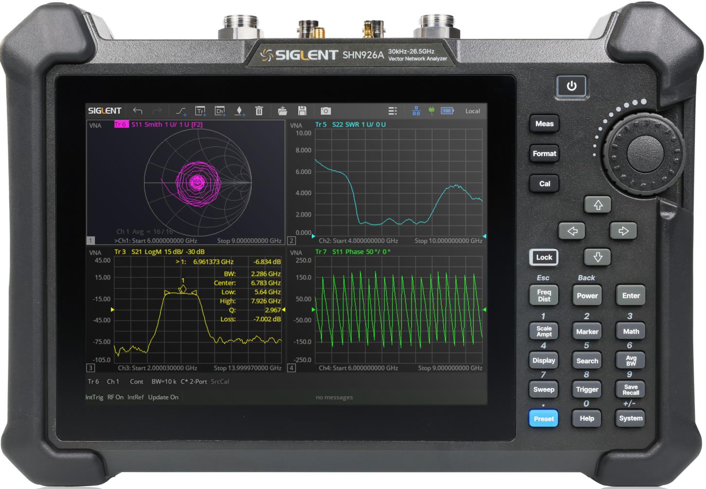 Il VNA Siglent SHN900A è uno potente strumento di formato compatto per l'analisi su reti RF, cavi e antenne pensato per l'uso in mobilitàEssendo strumenti alimentati con batterie agli ioni di litio che consentono un'autonomia fino a 4 ore, gli analizzatori SHN900A sono stati pensati per supportare efficacemente anche le misure "fuori laboratorio", da svolgere durante le attività di installazione, manutenzione e assistenza dei sistemi di comunicazione sul campo, nonché durante la manutenzione delle linee di produzione e i test sul campo nell'ambito dell'elettronica automobilistica.