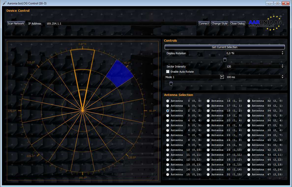 Il software di controllo e gestione permette sia di definire la manualmente ricezione da un particolare settore, sia di impostare la rotazione automatica veloce tra i vari settori per ottenere una ricezione omnidirezionale, oppure ancora di definire modalità di scansione su settori e polarizzazione personalizzabili secondo le proprie esigenze.