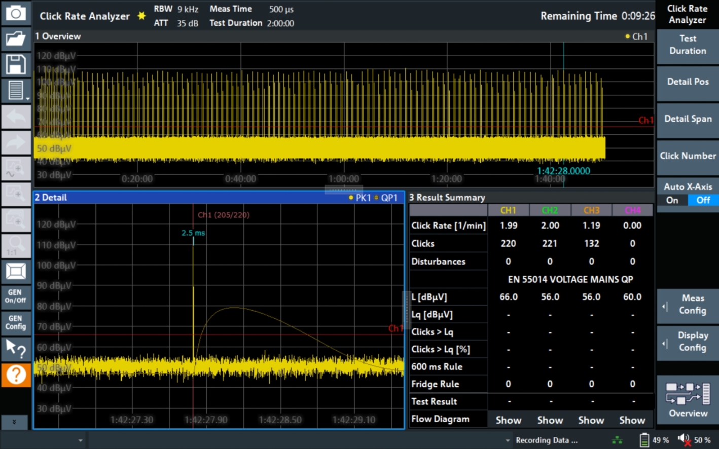 La nuova opzione R&S EPL1-K59 Click Rate Analyzer permette di effettuare facilmente le misure della frequenza di click secondo le modalità previste dalle norme CISPR 14-1 e dalla regolamentazione giapponese DENAN.
