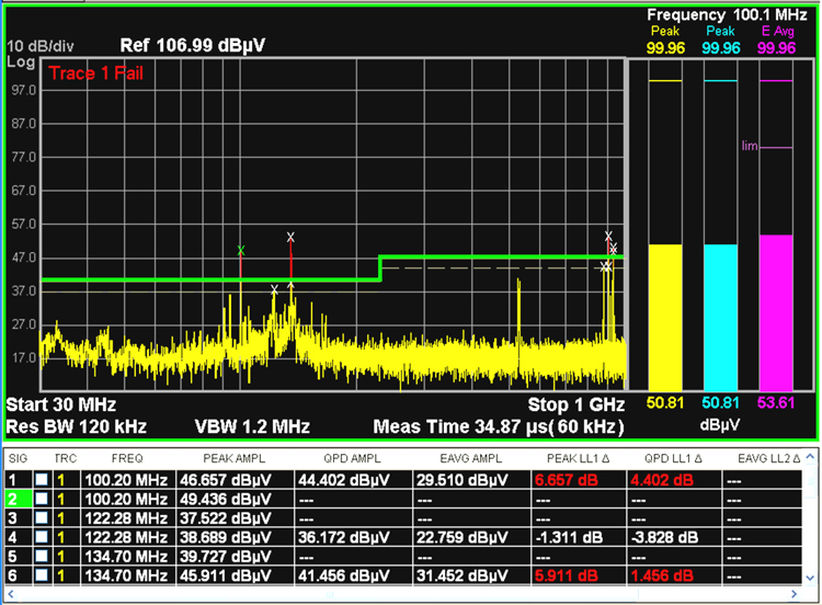 L'eccellente sensibilità e accuratezza degli strumenti permette di identificare anche i segnali a basso livello e di effettuare misure di precisione secondo quanto previsto dalla norme tecniche applicabili ai prodotti commerciali (CISPR 16-1-1) e militari (MIL-STD) sintetizzando i risultati con indicazioni di scostamento e risultati del tipo passa/non passa (pass/fail).