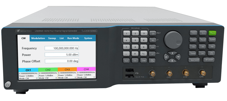 Versione da banco del generatore di segnali Lucid-XLa versione da banco dei generatori di segnali serie Lucid X offre fino a 4 canali coerenti di fase in un formato di altezza 2U da 19". Con un display touch da 5" e i pulsanti di controllo poste sul pannello frontale, la versione Benchtop consente i programmare lo strumento senza bisogno di un PC esterno. Per le applicazioni che richiedono più segnali sincronizzati con coerenza, come la fisica quantistica e le antenne phased array, la versione Benchtop è una soluzione ideale che puà garantire le elevate prestazioni richieste.