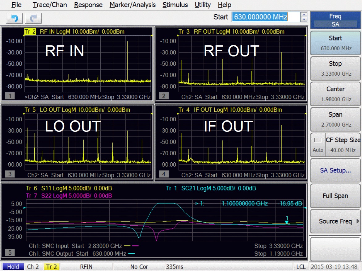Ad esempio, sarà possibile effettuare la ricerca di spurie in uscita a un mixer, oppure ancora valutare la quantità di segnale indesiderato che si trasferisce tra oscillatore locale, radiofrequenza e frequenza intermedia, le armoniche, i prodotti di intermodulazione e tutto quanto solitamente richiederebbe l'utilizzo di un analizzatore di spettro separato.