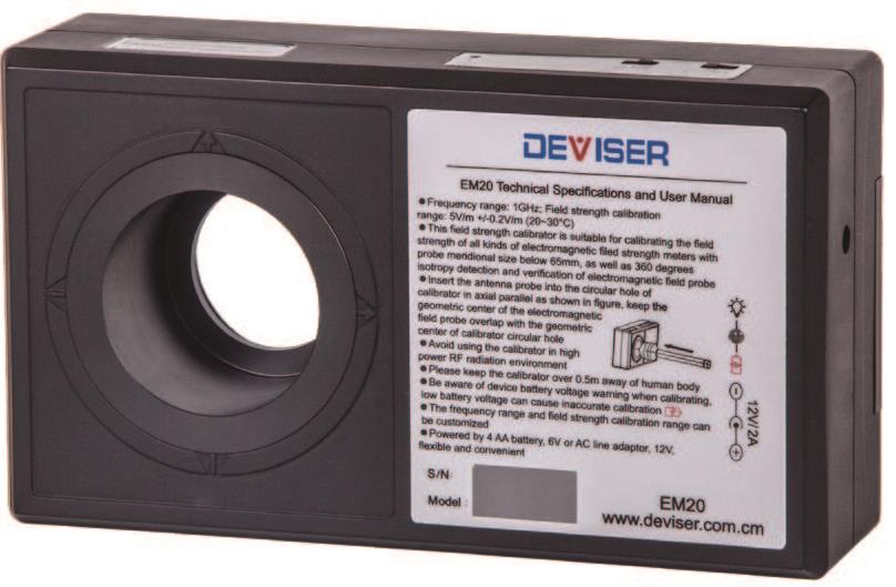 Insieme al misuratore di campo, Deviser ha introdotto anche il calibratore d’antenna EM20, un accessorio portatile e semplice da usare è in grado di fornire un campo elettromagnetico calibrato di 5 V/m a 1 GHz.