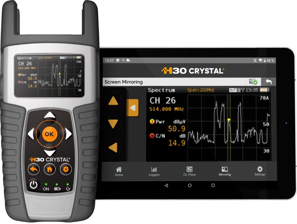H30Crystal è uno strumento completo e versatile realizzato da Televes dedicato agli installatori di impianti televisivi che oggi devono confrontarsi con reti di distribuzione classiche in cavo coassiale e reti di nuova generazione in fibra ottica.