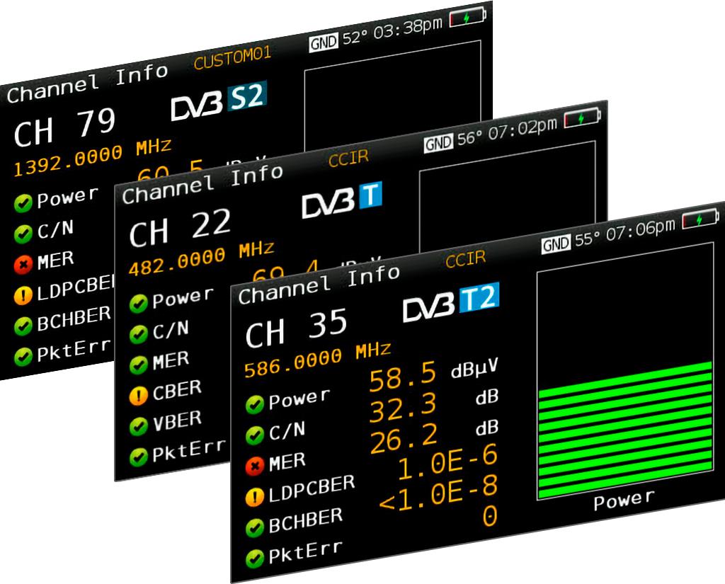 Grazie alle numerose funzionalità incorporate, il misuratore di segnali H30Crystal permette di valutare il comportamento di connessioni in fibra ottica, FTTx, reti WiFi, IPTV e segnali RF trasmessi con gli standard come DVB-S/S2, DVB-T/T2, DVB-C (QAM Annex A/B), segnali TV analogici e canale di ritorno delle reti di diffusione TV interattive.