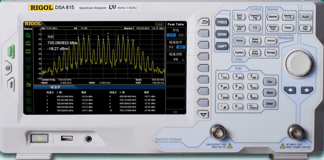 Il nuovo modello di analizzatore di spettro DSA832E-TG di Rigol Technologies mantiene un design compatto, copre le frequenze da 9 kHz a 3,2 GHz, ha uno stadio a frequenza intermedia completamente digitale e può essere equipaggiato anche con un generatore tracking opzionale da 3,2 GHz, che permette di utilizzare lo strumento anche come analizzatore di reti scalare.