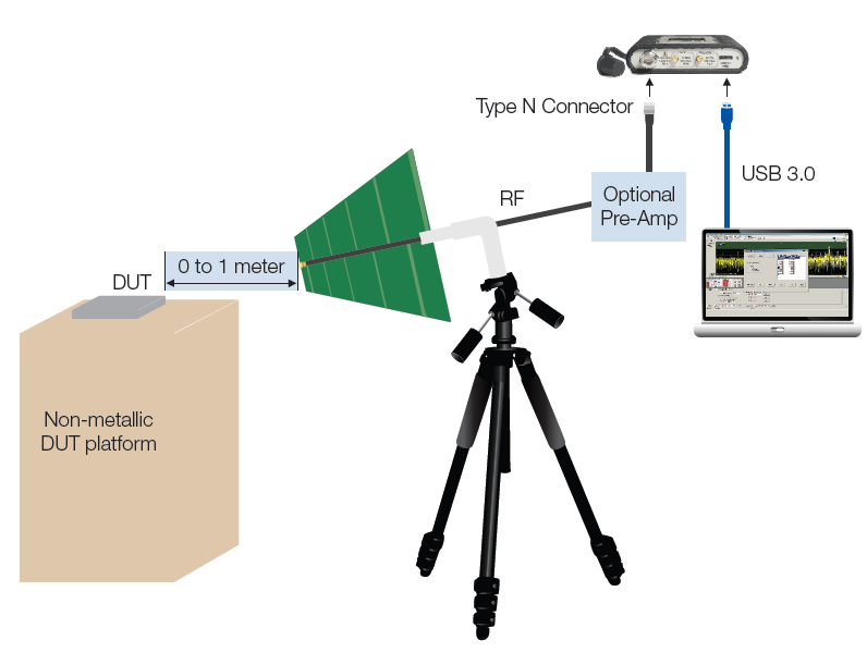 Gli strumenti sono controllati dal software SignalVu-PC che gira su un laptop o un tablet. Per facilitare l'esecuzione delle misure EMI/EMC, il pacchetto applicativo SignalVu-PC è stato arricchito con l'aggiunta del software EMCVu (opzionale), che mette a disposizioni varie funzioni utioili nei test di pre-conformità e per ricercare l'origine dei problemi sfruttando la medesima interfaccia utente.