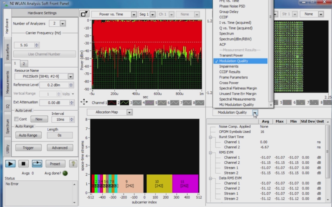 Ad esempio, lo strumento permette di analizzare i tipici segnali 802.11ax garantendo un errore di modulazione (EVM) inferiore a -54 dB.