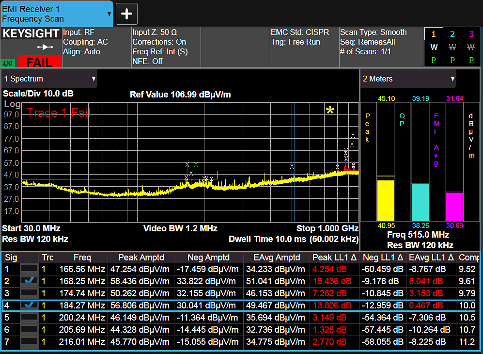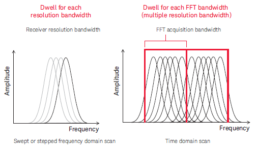 Inoltre, lo strumento supporta le modalità di misura delle emissioni con la scansione nel dominio del tempo (con calcolo delle FFT), che permettono di ridurre notevolmente i tempi necessari per verificare in modo affidabile se un dispositivo in prova rispetta i limiti di emissione.