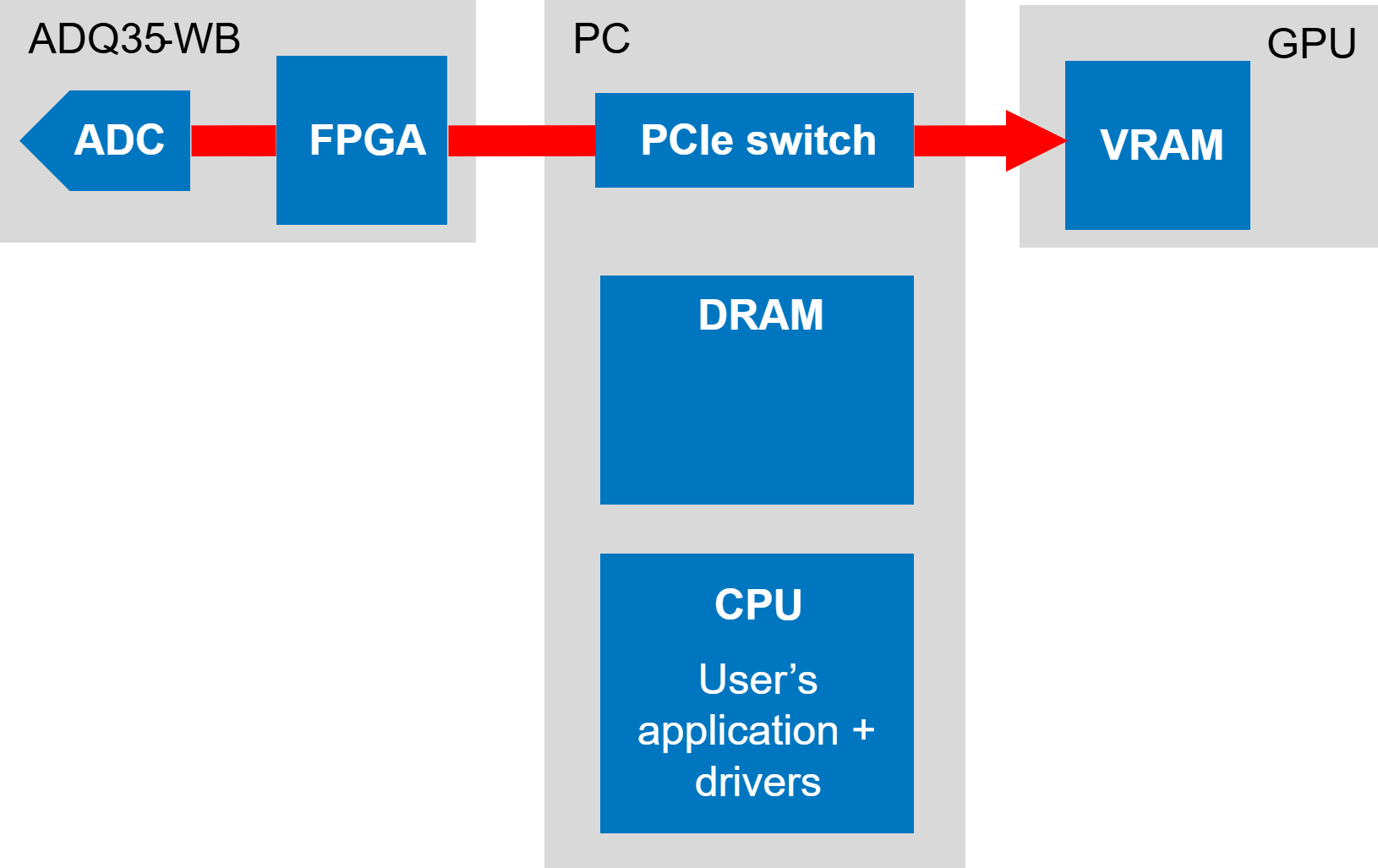 Con la modalità peer-to-peer streaming, i dati dei segnali vengono trasferiti direttamente alla GPU per l'elaborazione alla massima velocità, senza occupare CPU e memoria DRAM
