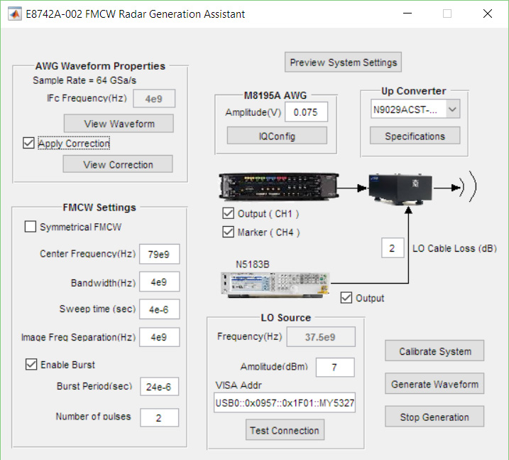 Ad esempio, per creare i tipici segnali con modulazione FMCW usati in questi tipi di radar, è possibile usare una procedura guidata per configurare il generatore arbitrario e il generatore di segnali, tenendo conto degli effetti delle varie interconnessioni, oppure sfruttare il pacchetto software N7608C Signal Studio per creare forme d'onda con modulazioni personalizzate.