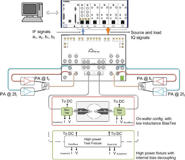 La soluzione automatizzata per la caratterizzazione non lineare è stata realizzata integrando un cestello PXI di National Instruments con i prodotti di Anteverta Microwave, Focus Microwaves, Maury Microwave e Mesuro.