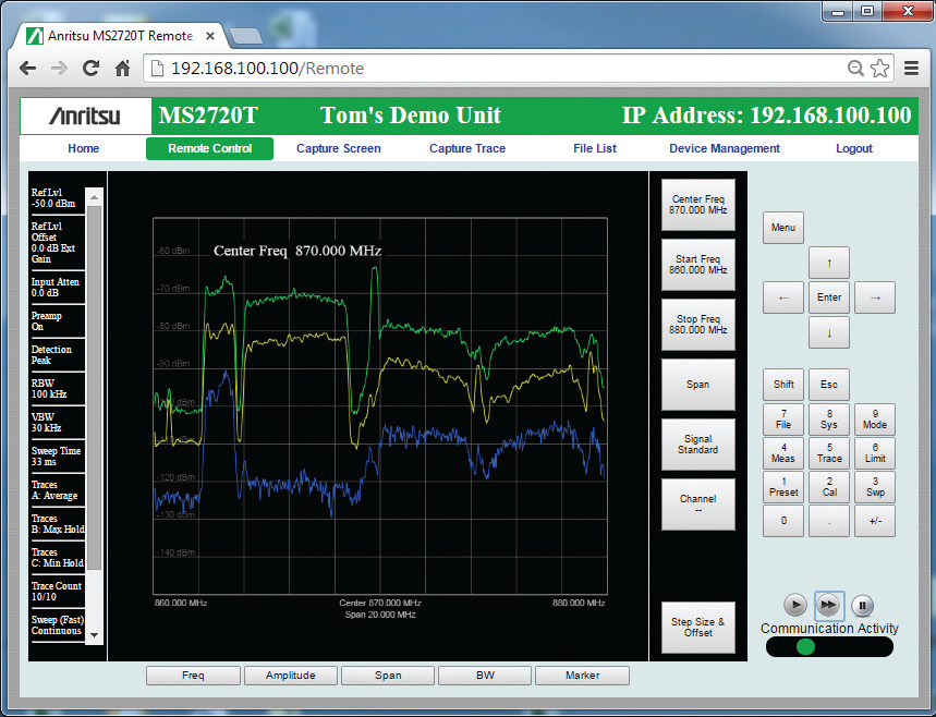 Anritsu ha realizzato una nuova soluzione per il telecontrollo via web dei suoi analizzatori di spettro delle serie MS271xE e Spectrum Master MS2720T.