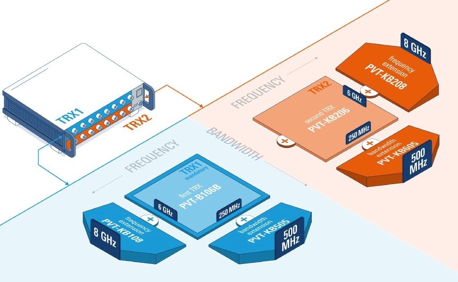 Il tester R&S PVT può essere espanso tramite codici di licenzaPer rispondere a tutti i requisiti di un mercato estremamente sensibile al prezzo, come quello dei collaudi in produzione, la soluzione composta da un unico strumento come il tester R&S PVT360A, flessibile e ricco di opzioni, permette di supportare molteplici configurazioni che vanno da un singolo generatore e analizzatore con otto porte di test per frequenze da 400 MHz a 6 GHz e una larghezza di banda di 250 MHz fino alla configurazione più completa a due canali, ciascuno con bande di frequenza fino 8 GHz e larghezza di banda di analisi di 500 MHz. Tutti le opzioni vengono abilitate tramite un codice di sblocco così da poter essere abilitate istantaneamente.