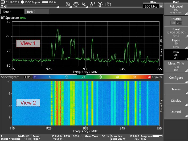Lo strumento è in grado di gestire intensità di campo molto elevate, in parte anche nel lobo di un’antenna trasmittente, e di rilevare in maniera precisa anche segnali di interferenza deboli.