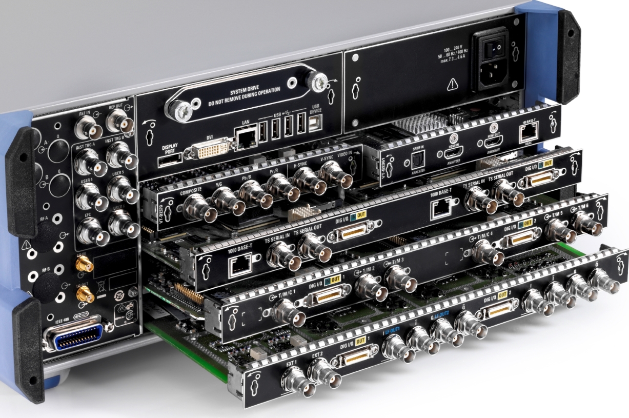 I generatori di segnali audio, video e RF installabili nello strumento R&S BTC consentono di effettuare in tempo reale prove complete a qualunque livello gerarchico della struttura di rierimento dei protocolli (OSI), con l'ulteriore possibilità di telecontrallare direttamente il dispositivo in prova interagendo con esso per eseguire sequenze di verifica anche molto articolate in modo completanente automatico.