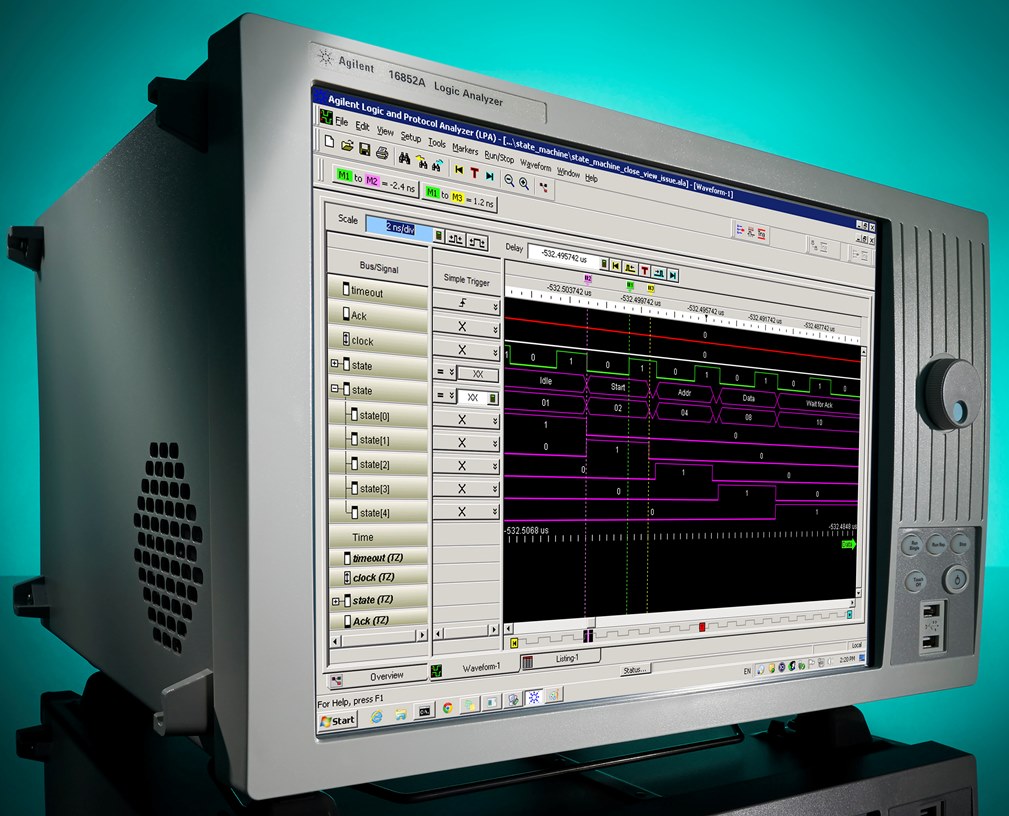 La nuova serie di analizzatori logici 16850 proposta da Agilent è composta da quattro modelli da 34, 68, 102 e 136 canali che supportano una frequenza di acquisizione asincrona (modalità timing) fino a 5 GHz (su metà canali), che può essere elevata fino a 12,5 MHz per ingrandire l'asse temporale nei dintorni dell'evento di trigger.