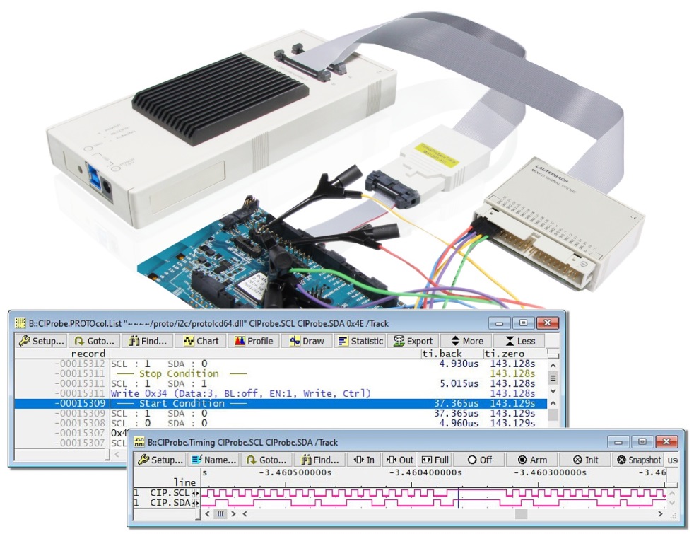 Il Mixed Signal Probe è un innovativo ed economico sistema sviluppato da Lauterbach per i suoi sistemi di sviluppo e debug Trace32 per i microcontrollori della famiglia ARM Cortex 32 che consente di registrare ad alta velocità sia segnali analogici che digitali, e di correlarli temporalmente con il trace del programma.