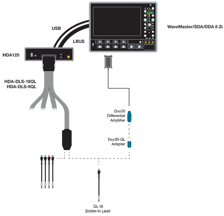 Il sistema di QuickLink è stato progettato da zero per essere compatibile sia con l’analizzatore digitale HDA125, sia con le sonde differenziali analogiche Teledyne LeCroy della serie WaveLink.